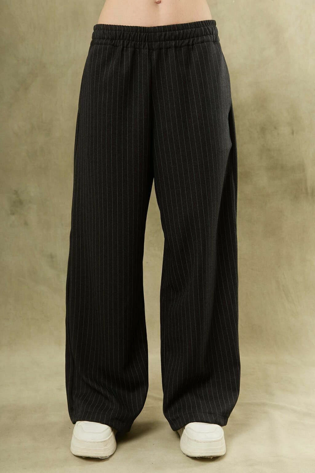 El tejido tizado aporta una textura sutil y distinguida, que realza la calidad y el acabado de la prenda. Su corte de pierna holgada permite una silueta relajada pero estilizada, perfecta para quienes buscan comodidad sin perder elegancia.